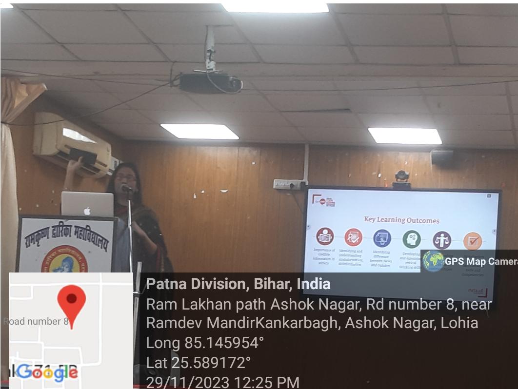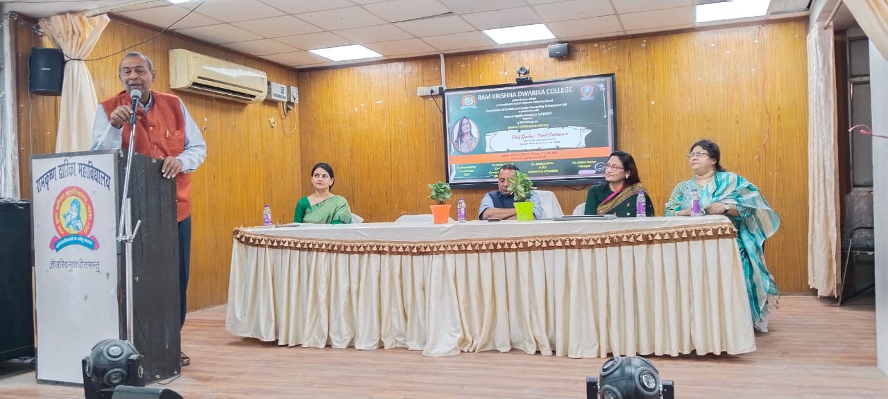 दिनांक 29/11/2023 को राम कृष्ण द्वारिका महाविद्यालय में संस्कृत विभाग , करियर काउन्सलिंग एवं प्लेसमेंट सेल द्वारा आइ क्यू ए सी के तत्वाधान में ‘मीडिया/ इनफॉरमेशन लिटरेसी’ विषय पर एकदिवसीय कार्यशाला का आयोजन किया गया। कार्यक्रम की मुख्य वक्ता “गूगल न्यूज़ इनीशिएटिव एंड फैक्टशाला” की मीडिया एजुकेटर एवं ट्रेनर मिनती चकलांविस रहीं। उन्होंने आधुनिक शिक्षा में सूचना एवं सूचना तंत्र की भागीदारी बताई, दुष्प्रचार और झूठी खबरों से छात्रों को बचने की सलाह दी।